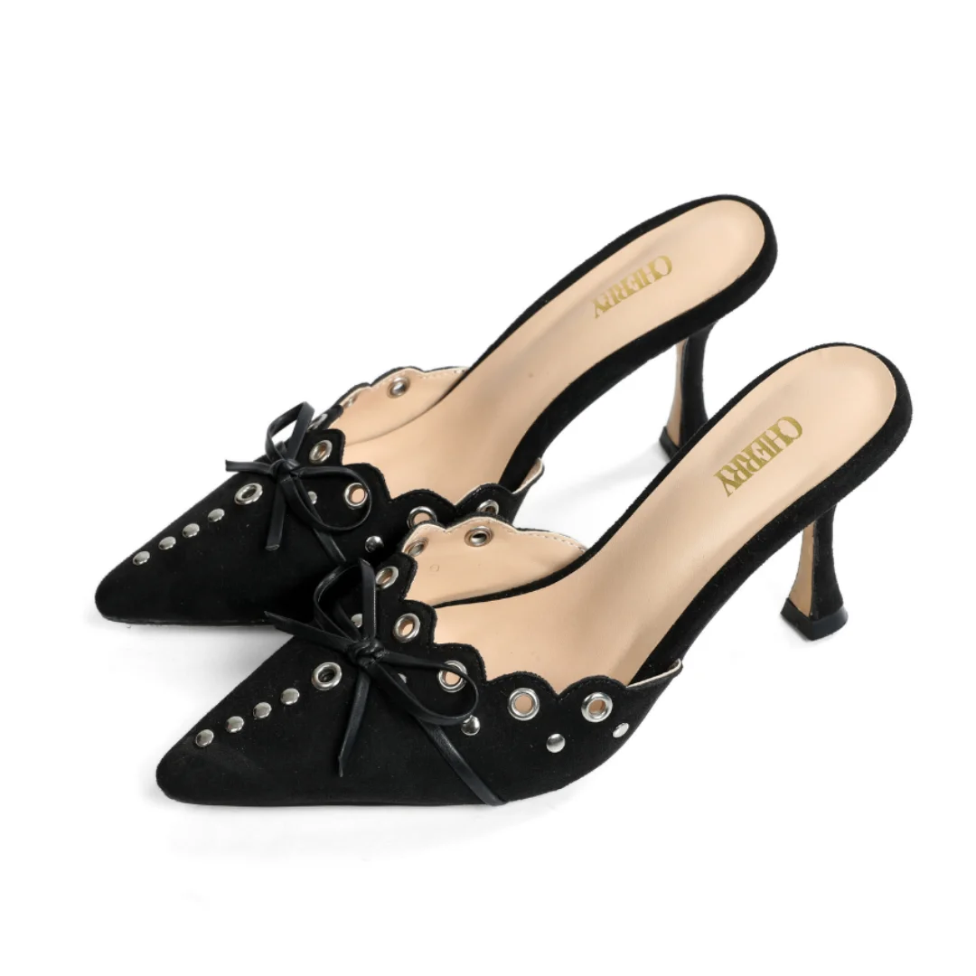 Perfect for adding a touch of edgy sophistication to any outfit, these mules are a must-have for any fashion-forward individual. Whether you're dressing up for a night out or simply want to elevate your everyday look, these mules are sure to make a statement.